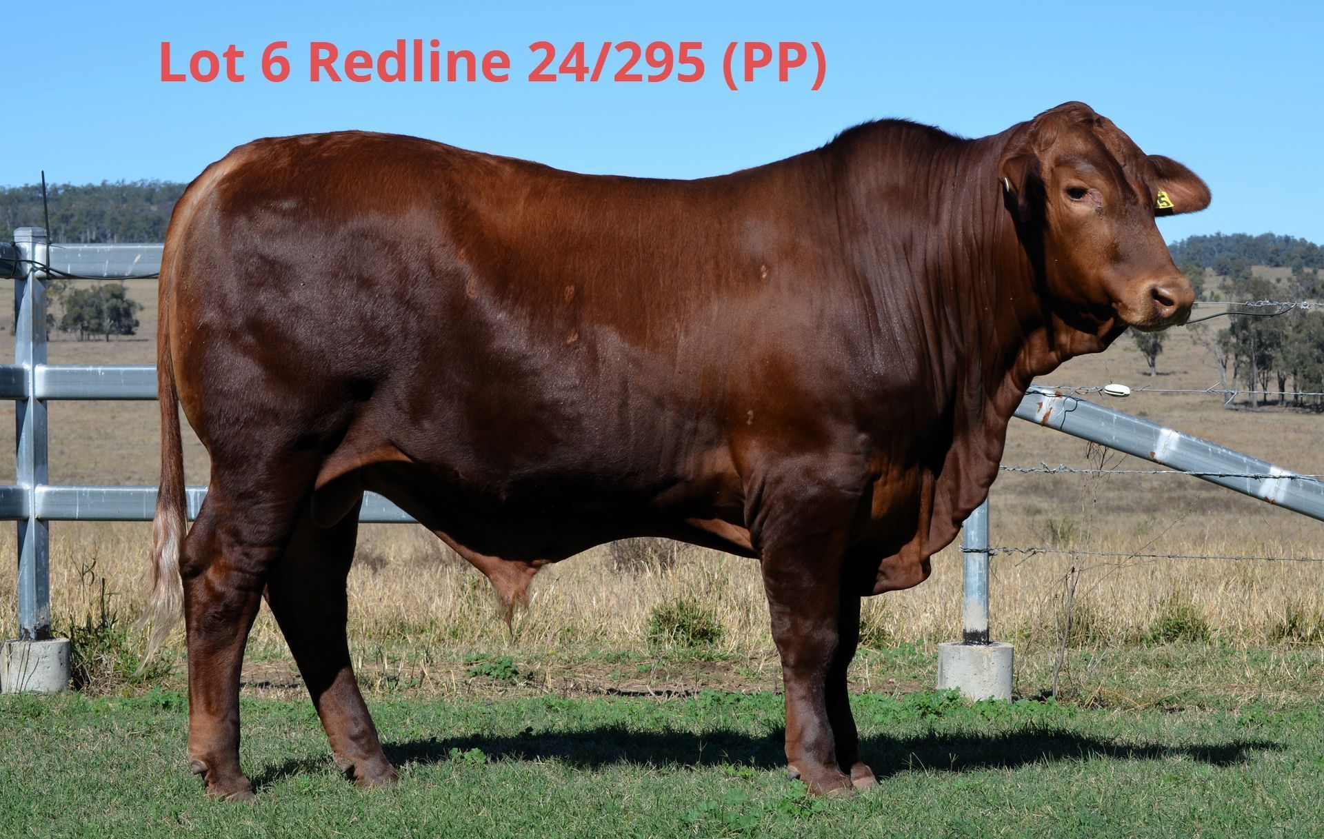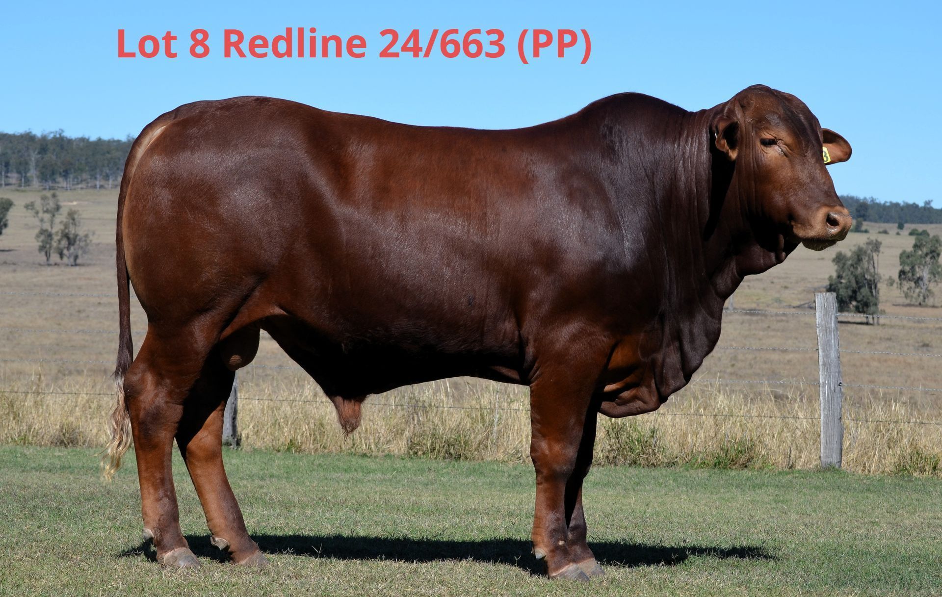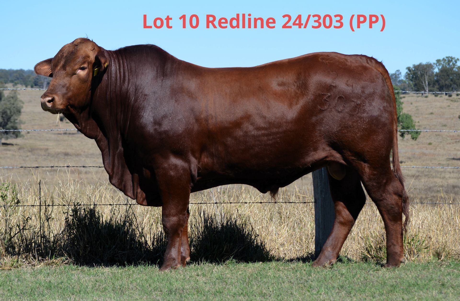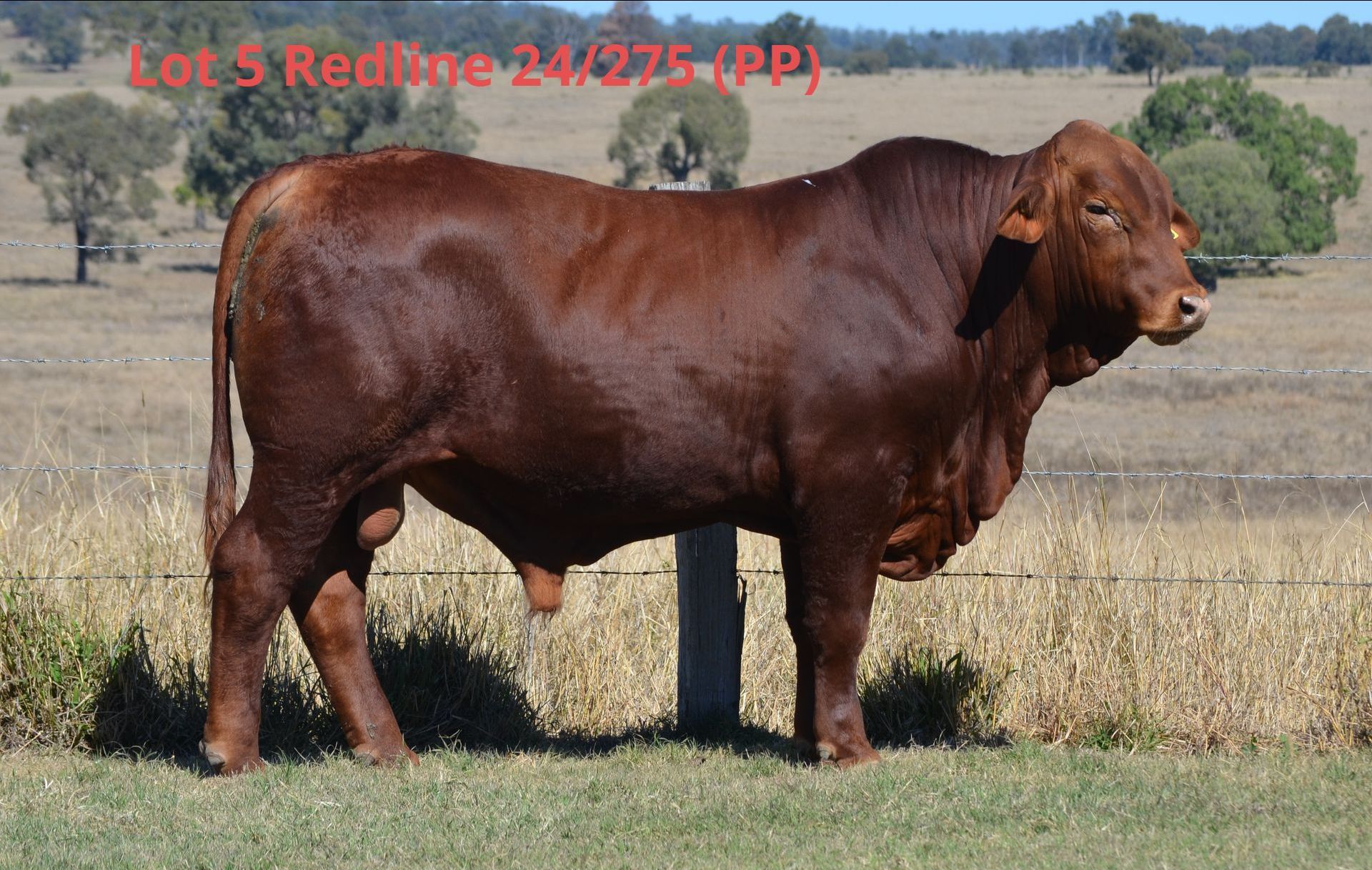 Redline will present two Ultra Red sires and eight Red Brangus sires at this year's Fitzroy Crossing Bull Sale. Lot 1 Redline 24/278 and Lot 2 Redline 24/264 are the designated Ultra Red sires, both sired by the Red Angus bull Boonyouin Reality R29. Our Red Brangus sires have strong phenotypes and calm temperaments. Redline Otis 8/266 (PP) is the sire of three animals included in our Fitzroy Crossing Sale team: Lot 3 Redline 24/406, Lot 5 Redline 24/275, and Lot 10 Redline 24/303. This sire has significantly influenced the Redline Brangus herd, producing outstanding progeny. All our sale bulls are homozygous polled.