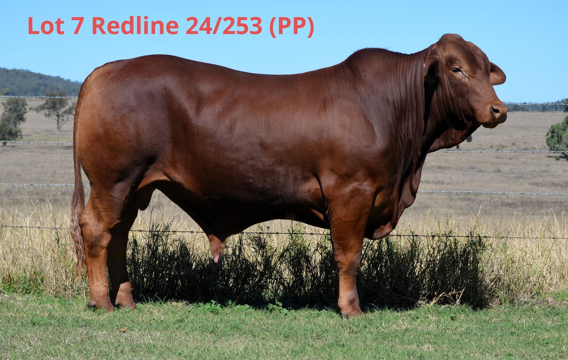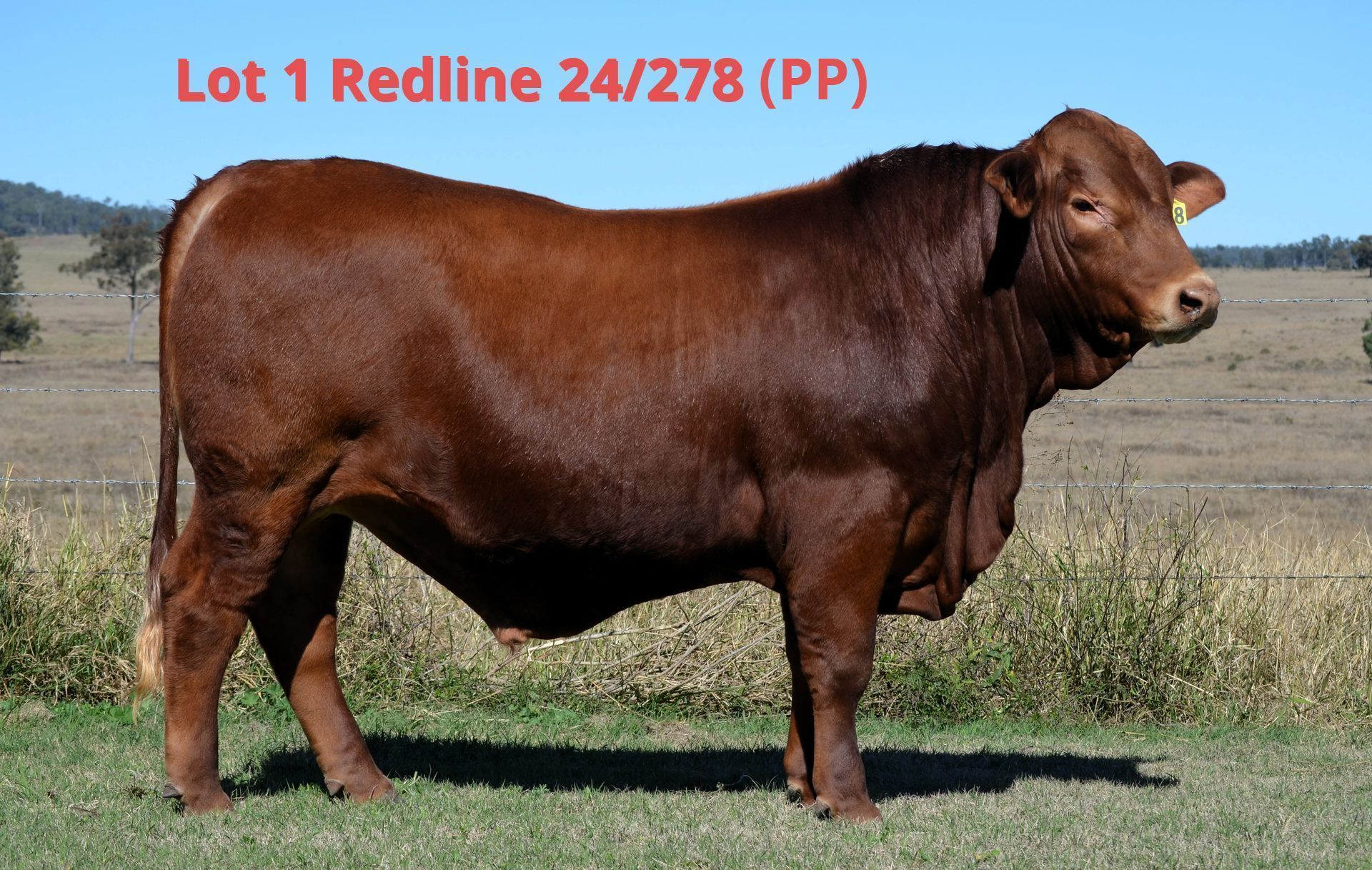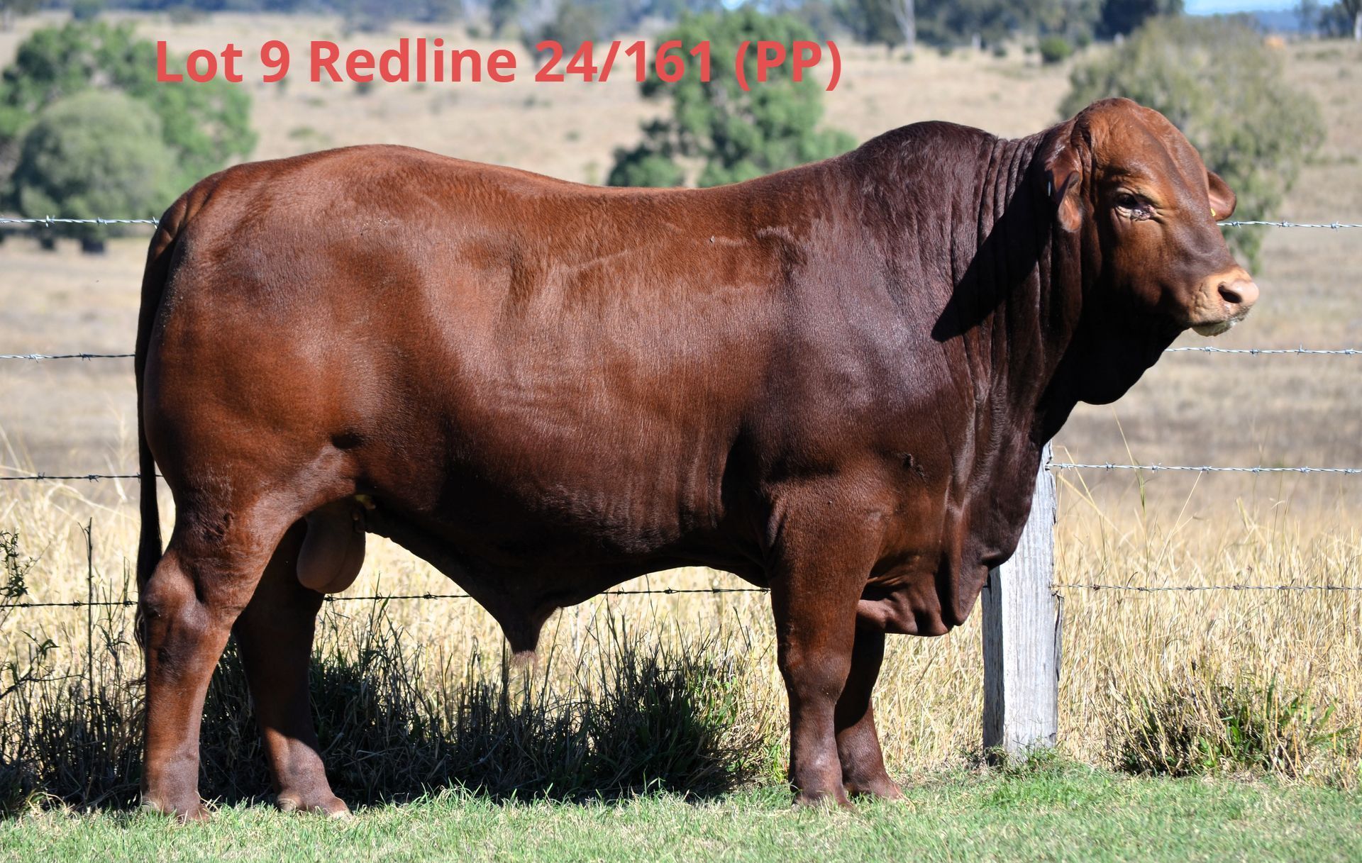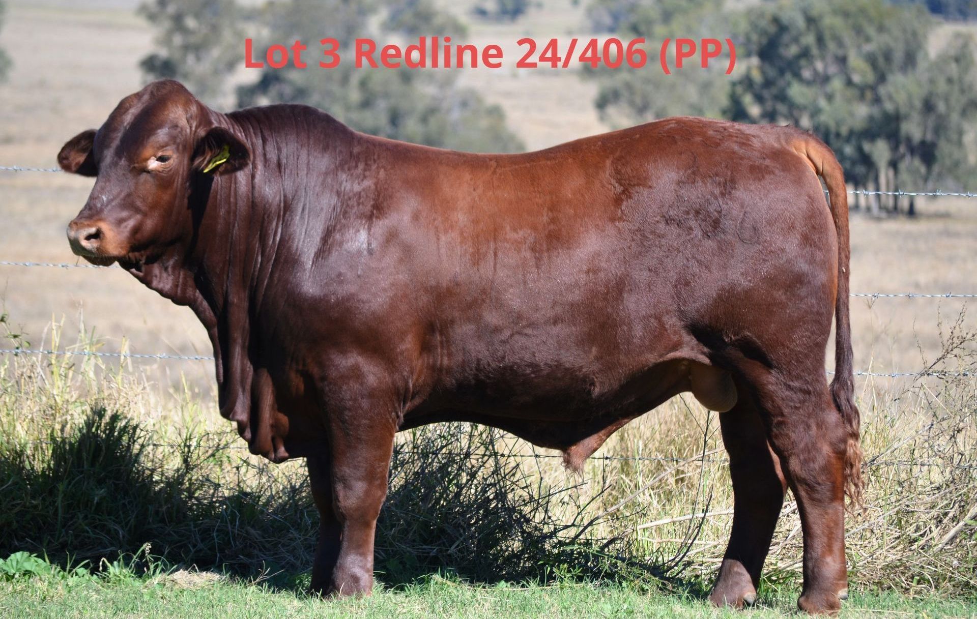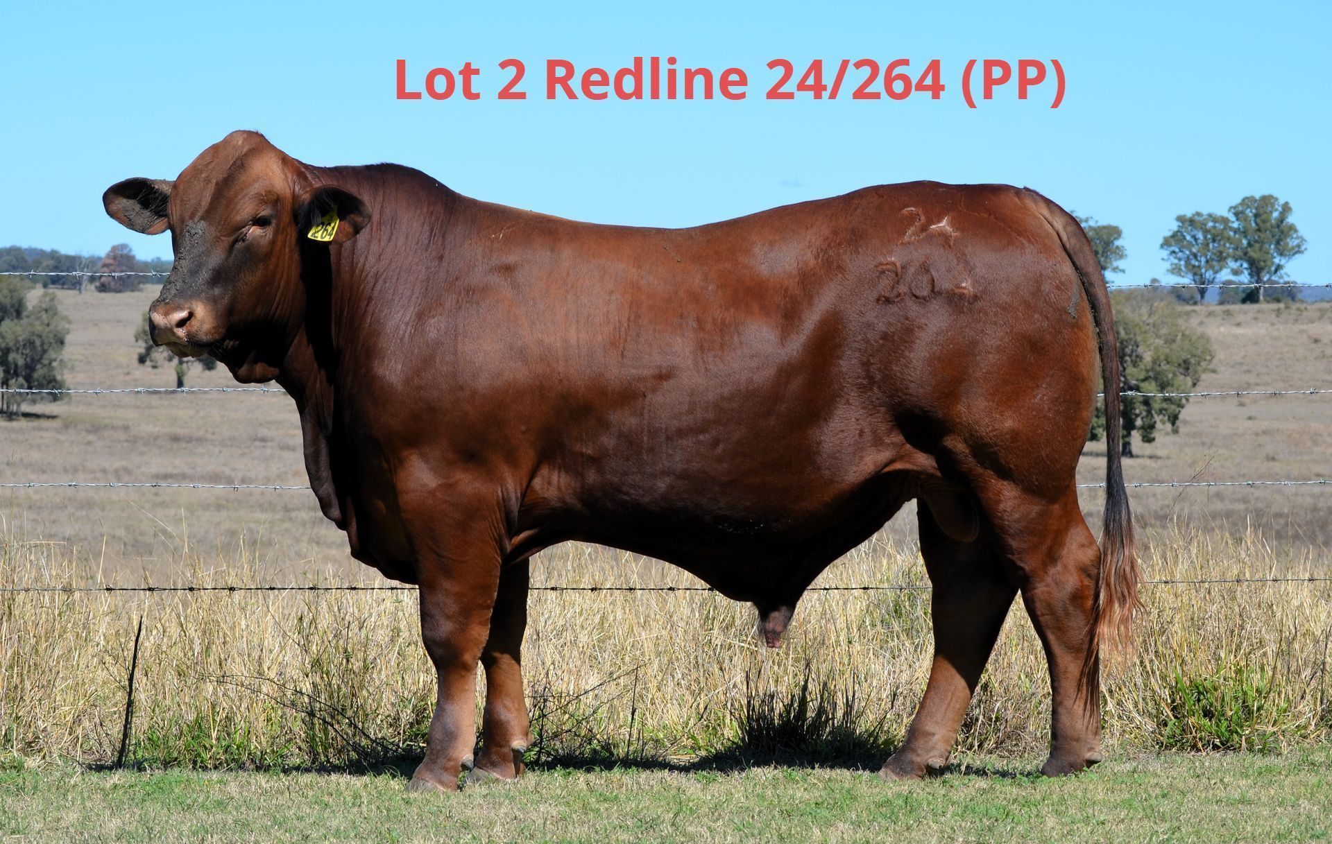 Redline will present two Ultra Red sires and eight Red Brangus sires at this year's Fitzroy Crossing Bull Sale. Lot 1 Redline 24/278 and Lot 2 Redline 24/264 are the designated Ultra Red sires, both sired by the Red Angus bull Boonyouin Reality R29. Our Red Brangus sires have strong phenotypes and calm temperaments. Redline Otis 8/266 (PP) is the sire of three animals included in our Fitzroy Crossing Sale team: Lot 3 Redline 24/406, Lot 5 Redline 24/275, and Lot 10 Redline 24/303. This sire has significantly influenced the Redline Brangus herd, producing outstanding progeny. All our sale bulls are homozygous polled.