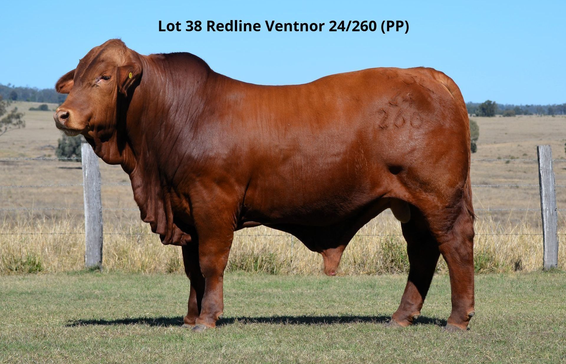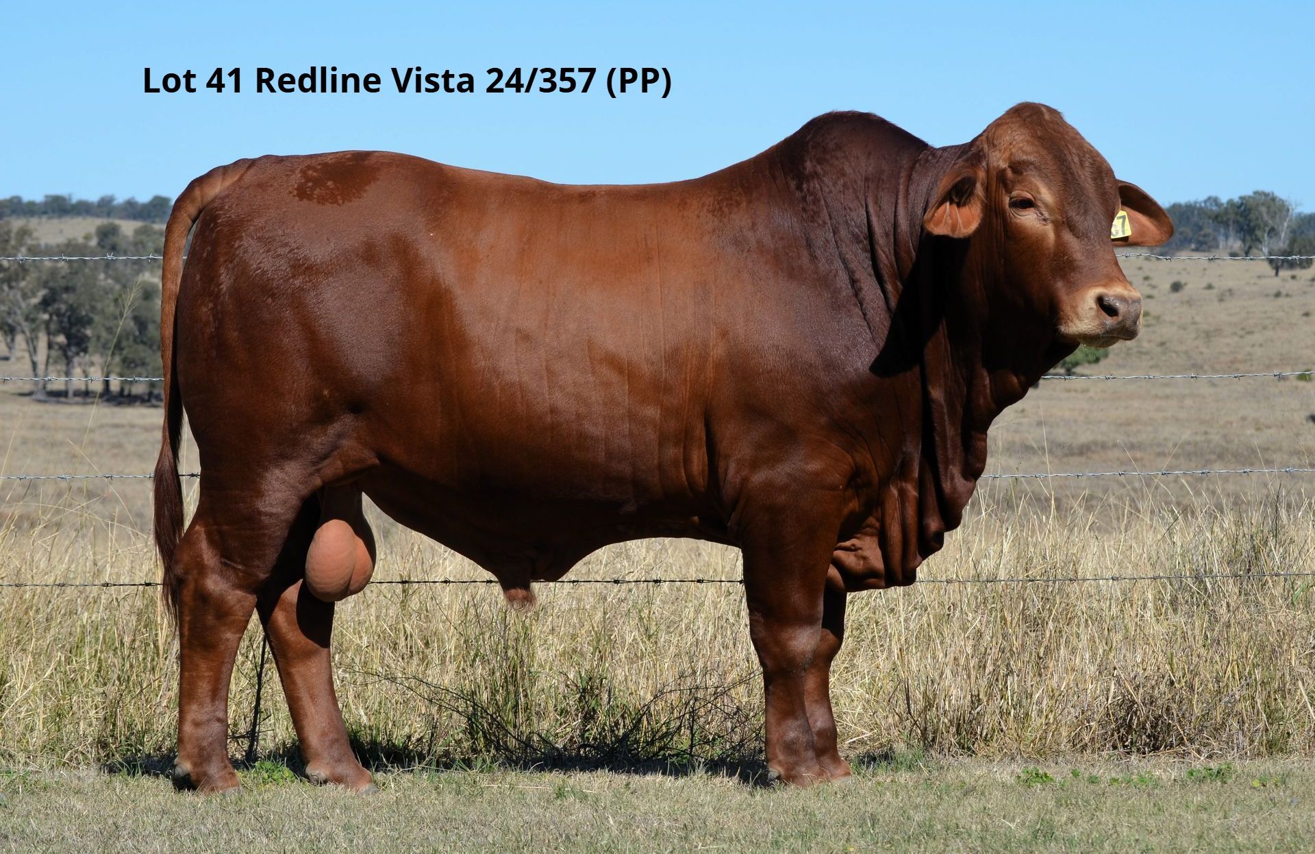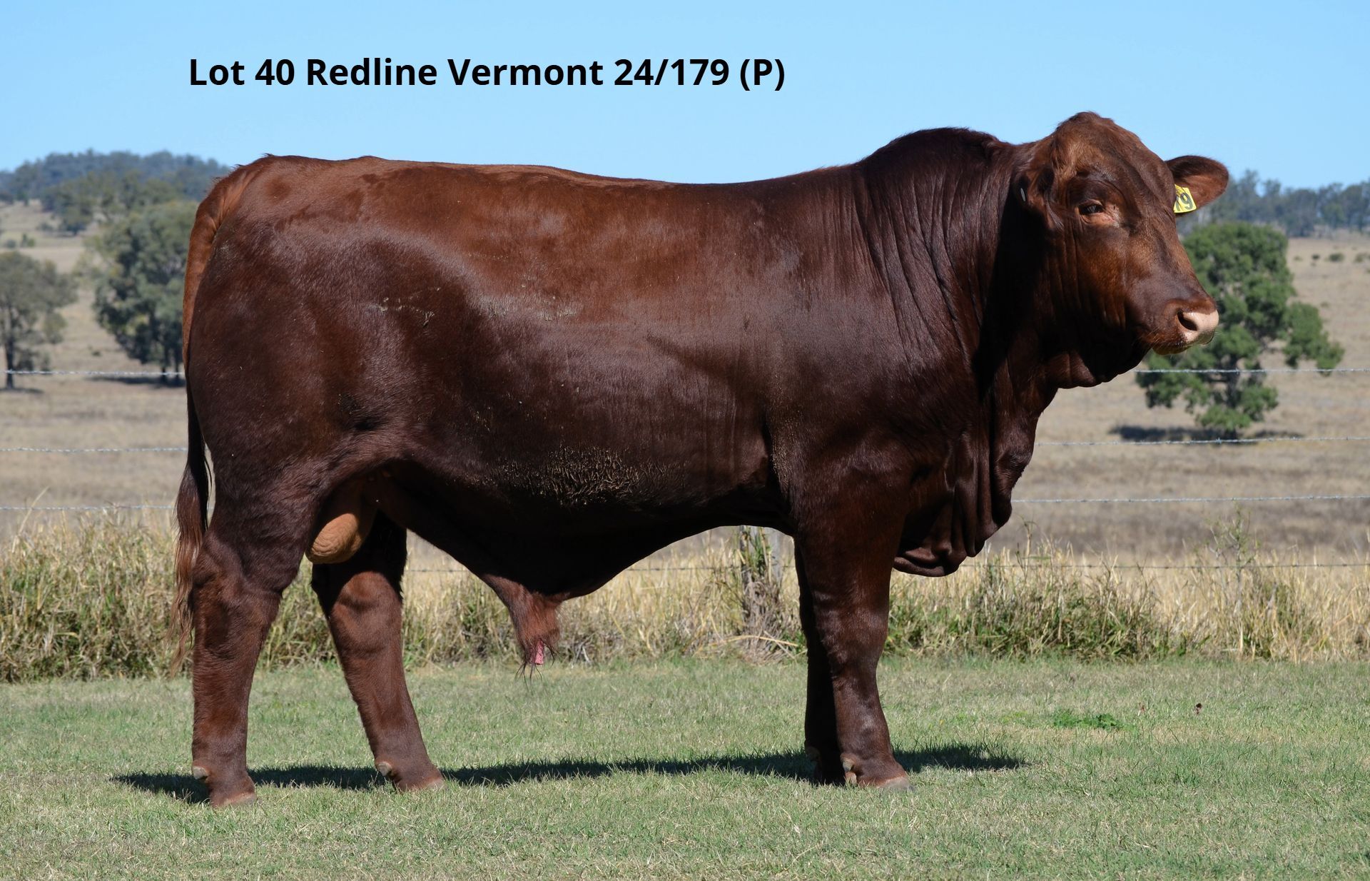 Redline Brangus is selling 3 impressive young Red Brangus sires and 1 Ultra Red sire – Lots 38 to 41. Lot 38 Redline Ventnor 24/260 (PP) is a standout young sire that would benefit any herd. His sire, Redline Otis 8/266 (PP), has contributed significantly to the herd. Lot 40 Redline Vermont 24/179 is our first Ultra Red at the Monto All Breeds Sale, sired by GK Red 26 Quicksilver, the top-priced bull from the Power of Red Angus Sale.